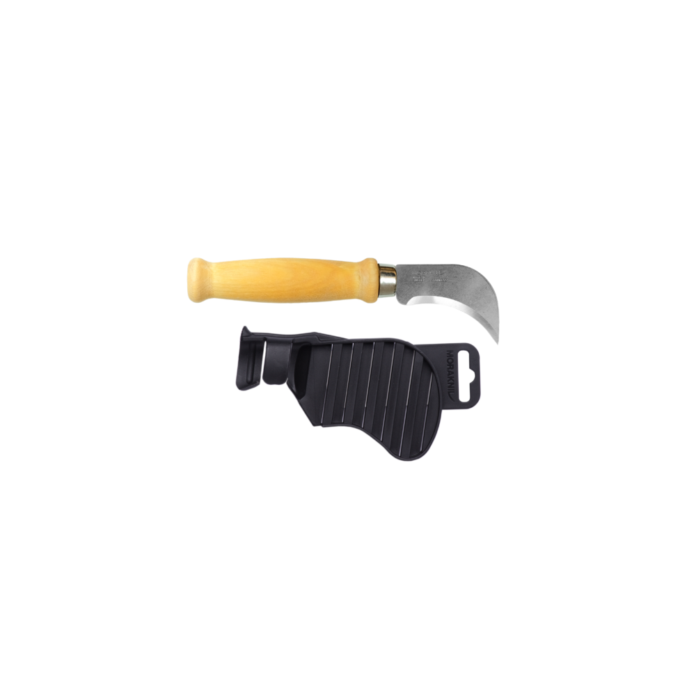 Cuțitul de pâslă de acoperiș are o lamă de oțel inoxidabil și un mâner de mesteacăn uns, special conceput pentru a oferi o forță maximă de tragere. Poate fi folosit și pentru covoare și piele.